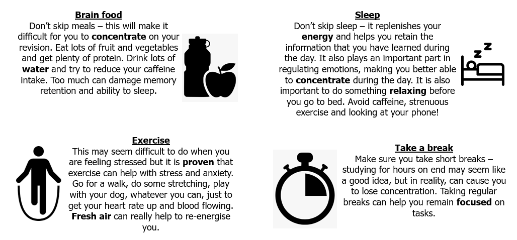 Below are some of the ways to cope so stress does not affect your revision or your health.