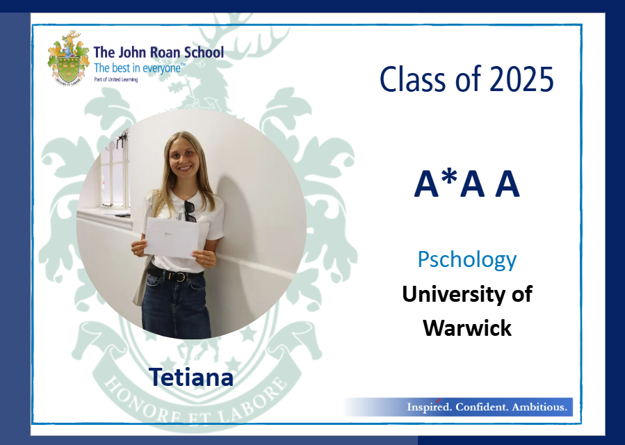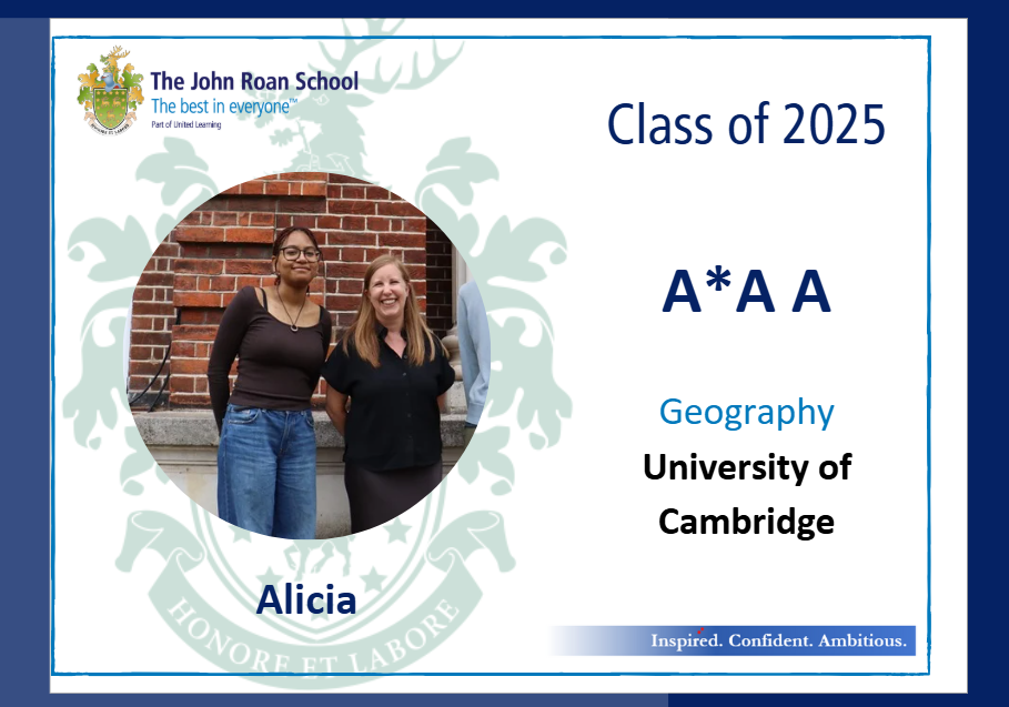 The John Roan School 2025 A Level results saw a significant improvements on all key headline measures, with half of all A Level entries achieving A*-B grades.