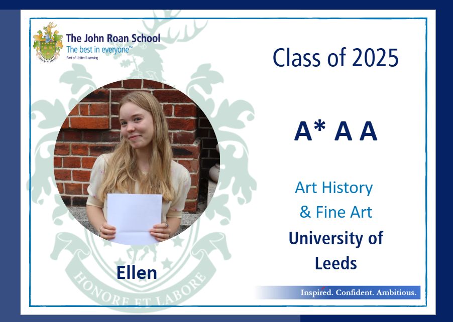 • Ellen, who achieved an A* in Art and As in History and Geography and will be taking up a place to study Art History and Fine Art at Leeds University;
