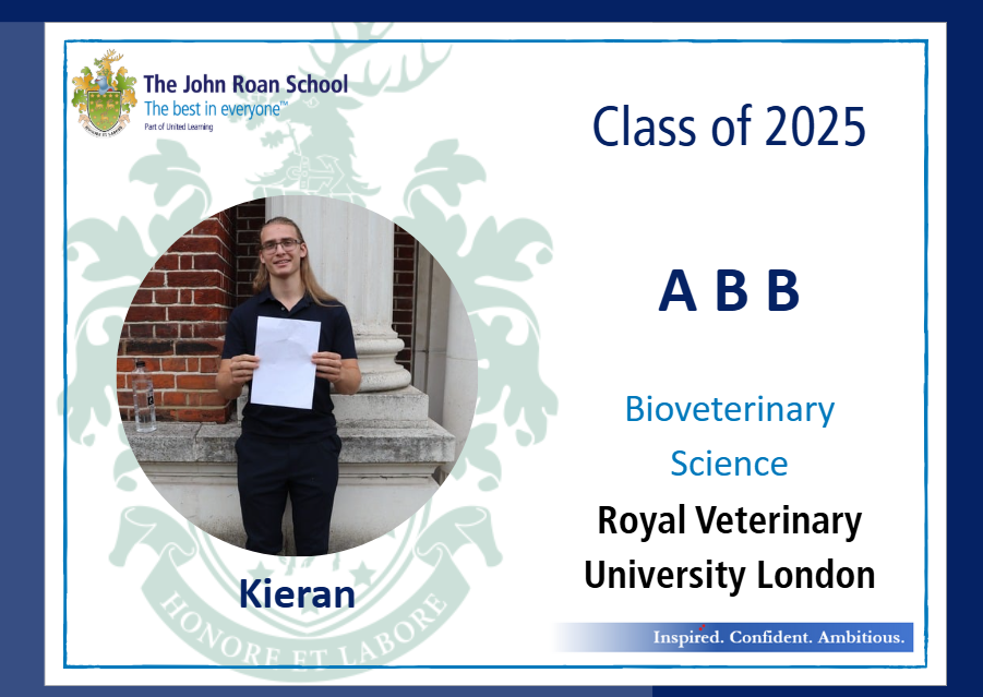 • Kieran, who achieved ABB and will be going to study at The Royal Veterinary University in London