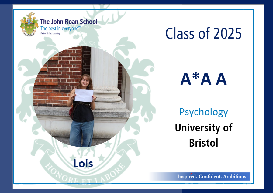 • Lois, who will be heading to Bristol to study Psychology after achieving an A* in Psychology and As in Maths and Biology;