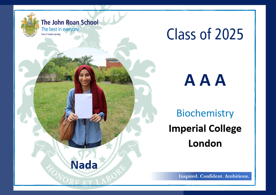• Nada, who achieved As in Maths, Biology and Chemistry and will be taking up a place at Imperial College London to study Biochemistry;