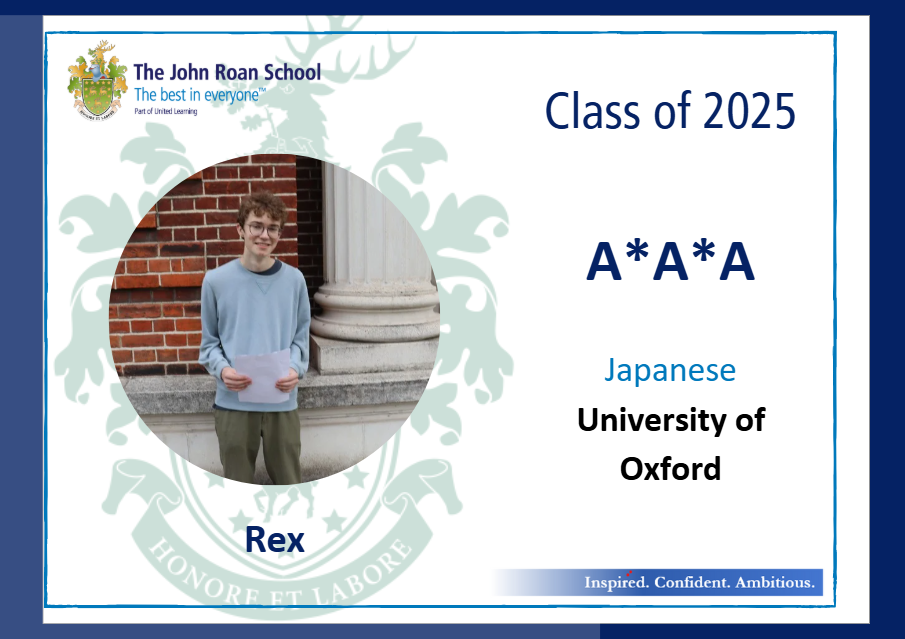 • Rex, who achieved A*s in Maths and Politics and an A in History and is excited to take up a place at the University of Oxford to study Japanese;